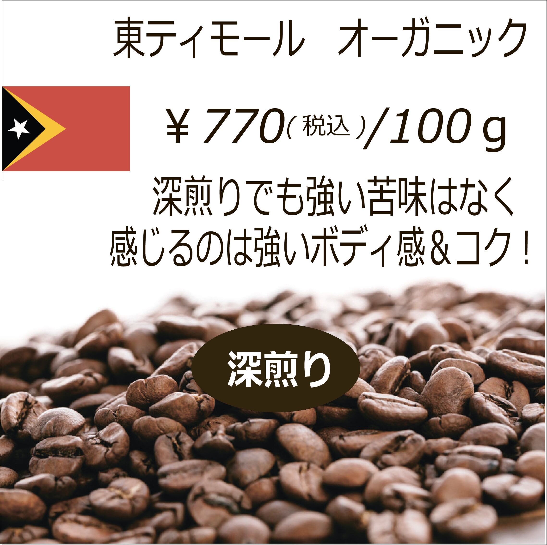 東ティモール産の有機豆 日本法人指導のフェアトレード品 スクリーン(豆の大きさ)が揃っていて管理の良さを感じます! 深煎りにしましたが、嫌な苦みありません。 強いボディ感&コクを楽しんでください。